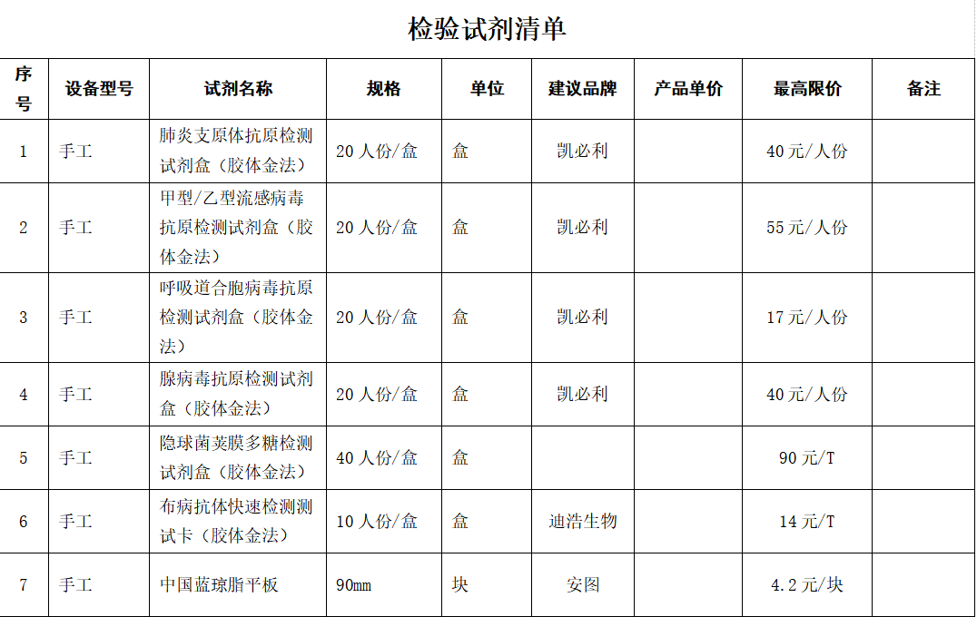 一、投标人经营范围须涵盖检验试剂,投标人需提供营业执照、产品注册证、授权书、报价单,否则该报价将视为废标。报价仅限于人民币,不接受选择性报价,同一种货物仅允许提供一个报价。投标人所报价格应包括运输、交装、调试、后续服务、税金等所有费用。